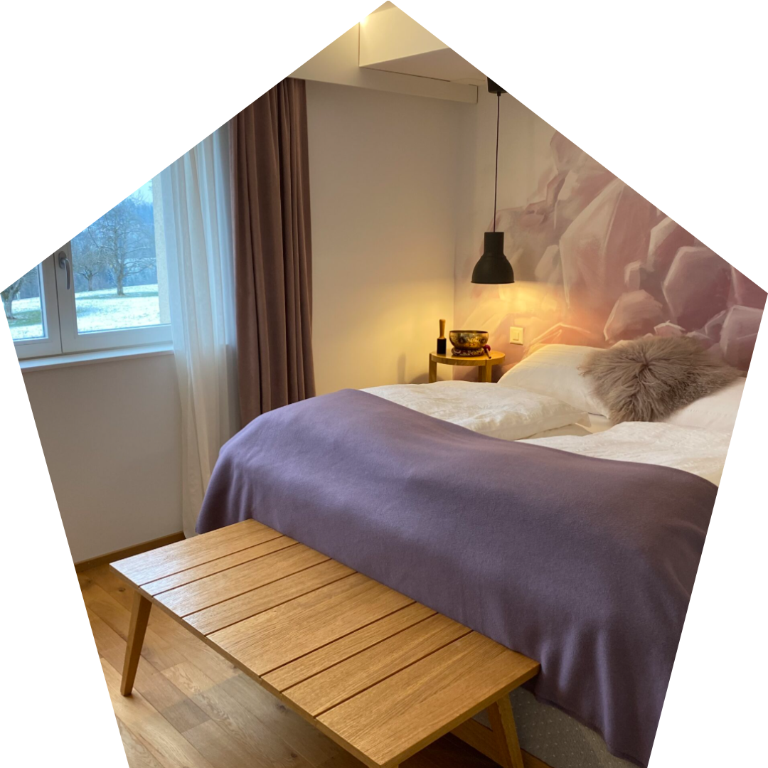 ein einzigartiger Rückzugsort, der Körper, Geist und Seele in Einklang bringt. Mit elf individuell gestalteten Zimmern, benannt nach Edelsteinen wie Amethyst, Lapislazuli oder Labradorit, bietet die Unterkunft eine harmonische Atmosphäre, die durch natürliche Materialien und energetisierte Elemente unterstützt wird.